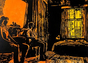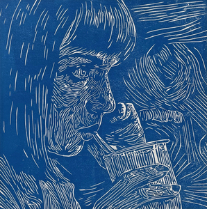 2026Linosnede, reductietechniek, 4 drukgangen.